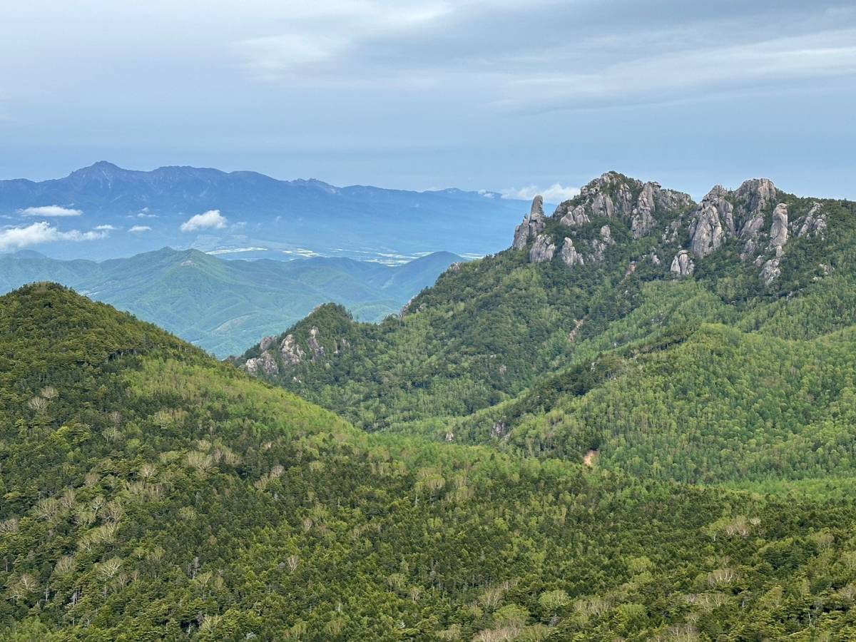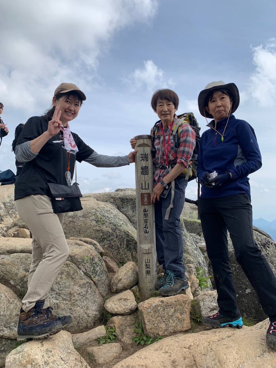 途中、木々の向こうに見えた瑞牆山に歓声が上がる。