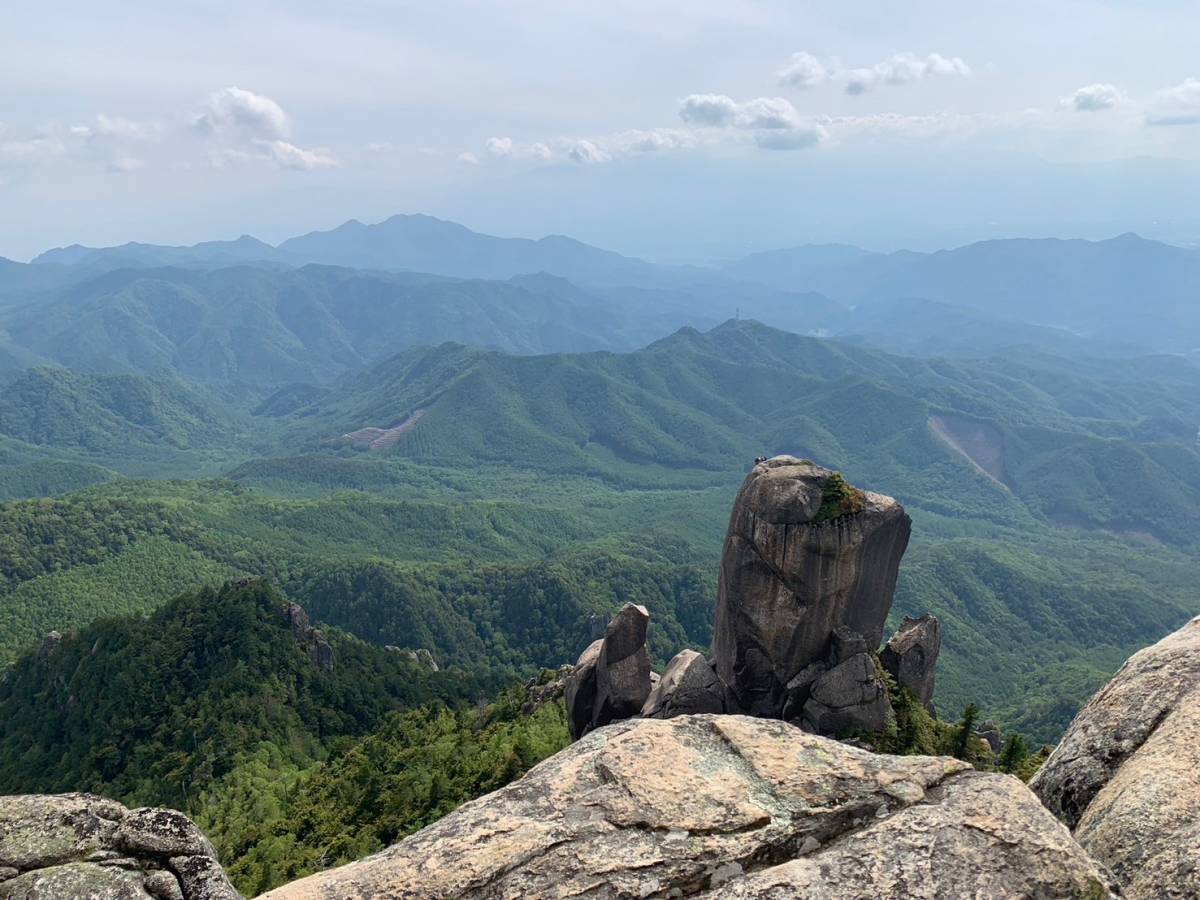14:50、瑞牆山山頂に到着。切り立った山頂から西に八ヶ岳が望め、北東には明日登頂する金峰山も望めた。往路を戻り、17:20に富士見平小屋に帰着。