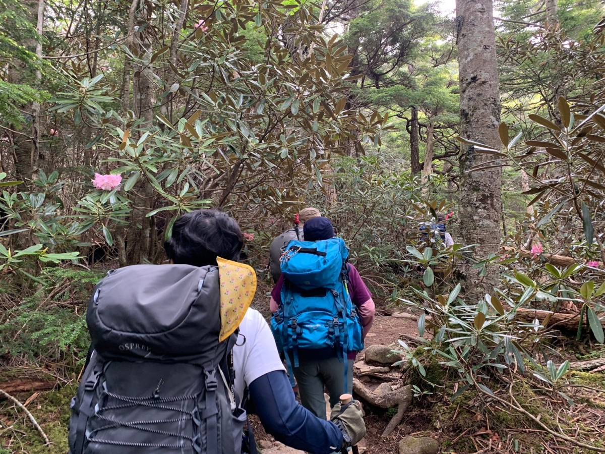標高を上げるにつれイワカガミやシャクナゲが可憐に咲いていて癒される。