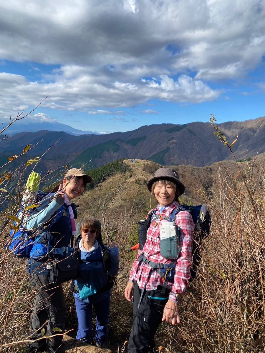 14時18分、塔ノ岳山頂に1時間遅れて到着した。富士山も少しお隠れになっており、そそくさと集合写真を撮り下山へ。