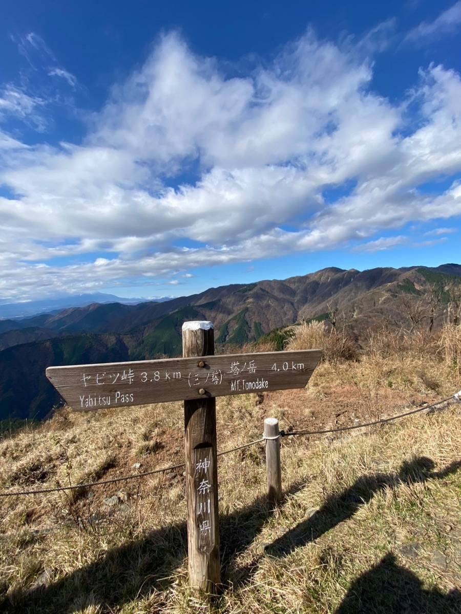 二ノ塔、三ノ塔と順調に歩き進める。三ノ塔から表表尾根がいくつかのピークを連ねて高度を上げ、塔ヶ岳山頂まで伸びているのが見えた。富士山、南アルプス、箱根、大野山、江ノ島、大島の眺望に気分があがる。