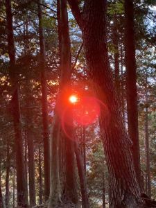 日没の時刻となり、木立の間に夕陽が燃える。人の顔も登山道も派手な朱色にまだらに染まる。見晴茶屋で膝痛の2名に対処。日没後ヘッテンをつける。灯りが輝く街の夜景が美しい。17:50に大倉バス停に到着し、18:08のバスで渋沢駅へ向かった。天候の判断や休憩のインターバルなど、学ぶことの多い山行だった。