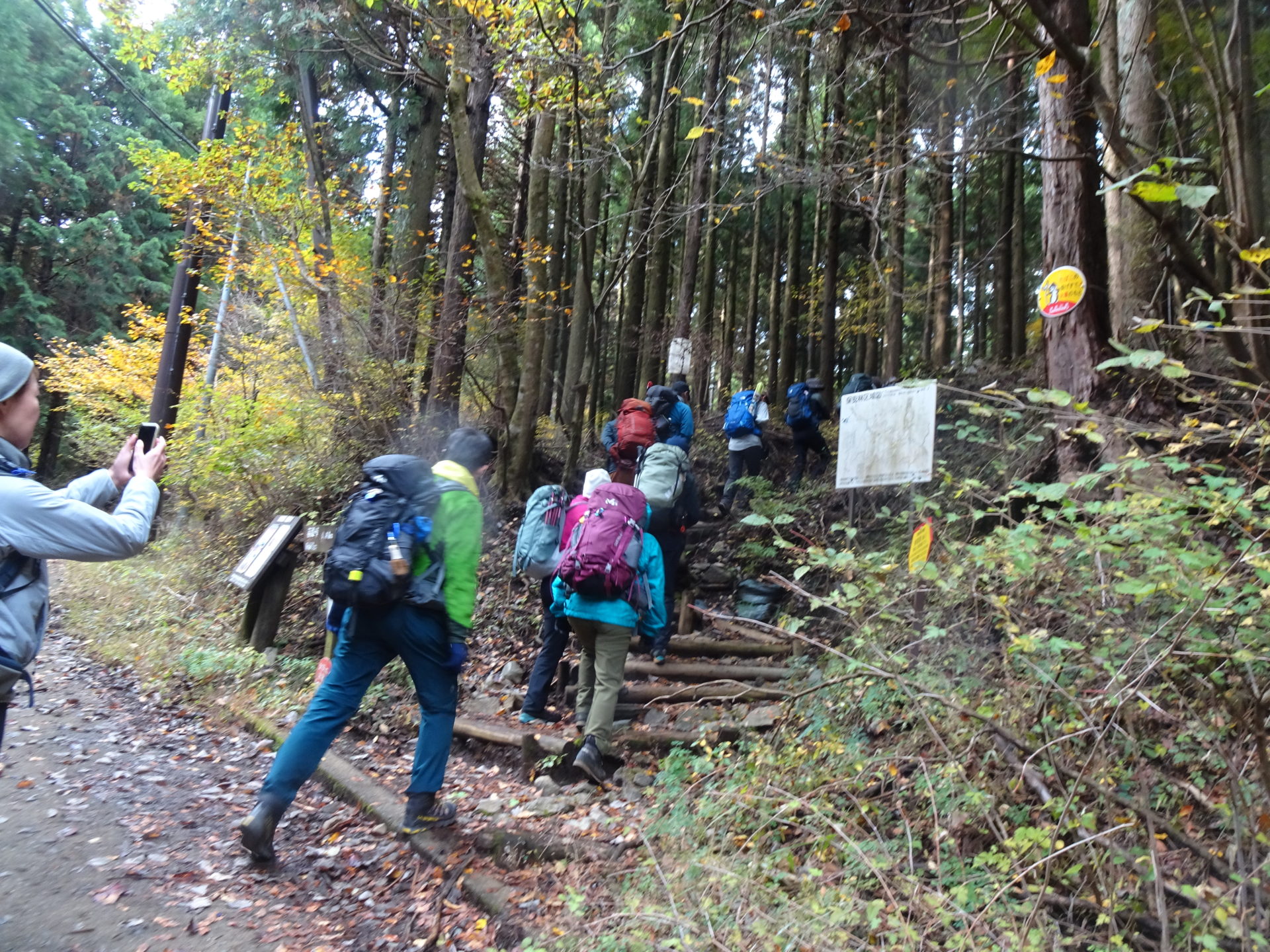 【記録】絶好の山行日和で秦野駅ではヤビツ峠行きバス停は長蛇の列。臨時バスが6,7台出た。ヤビツ峠へはバラバラと到着。全員揃ったところで8時40分、計画の10分遅れで出発。