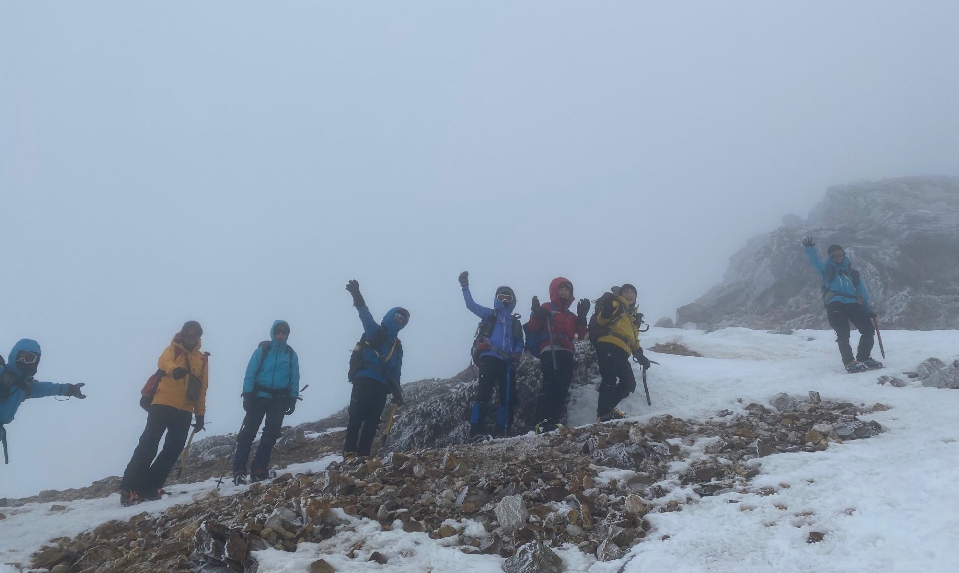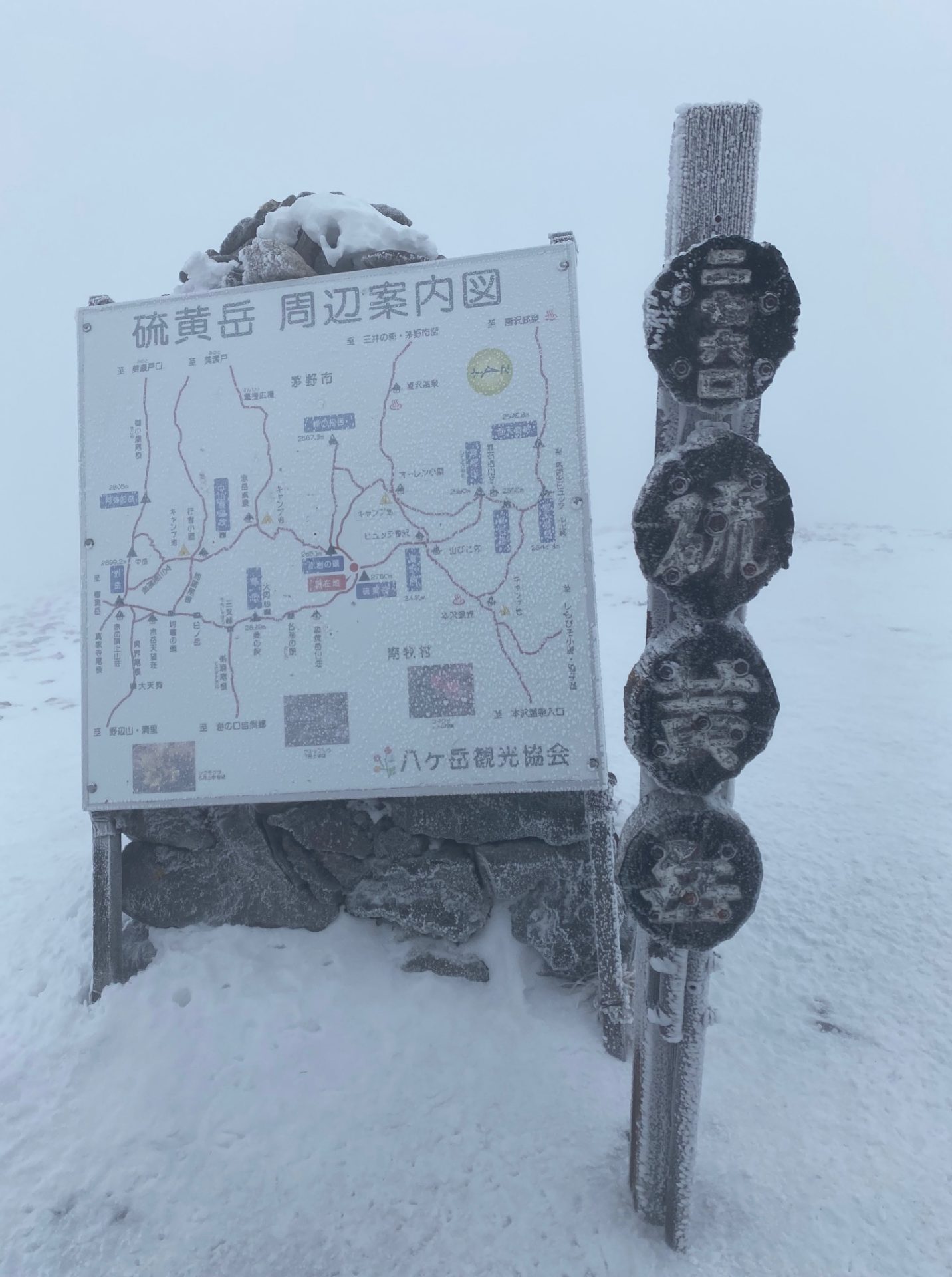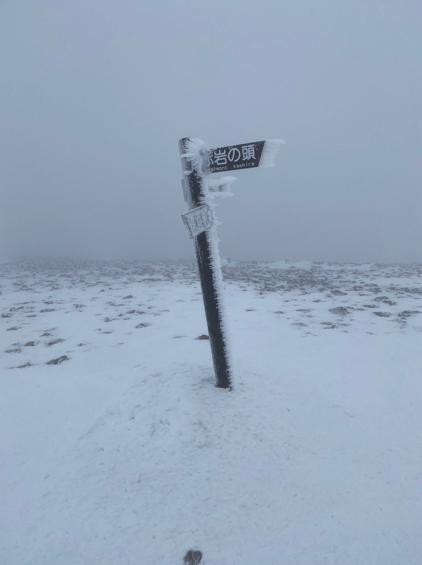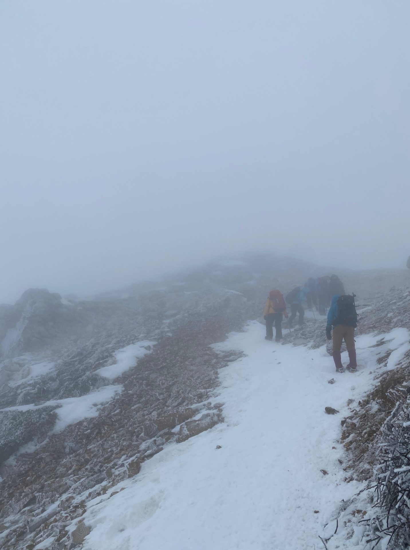 赤岩の頭の手前からは視界は真っ白で、体もよろけるくらいの風を浴びる。