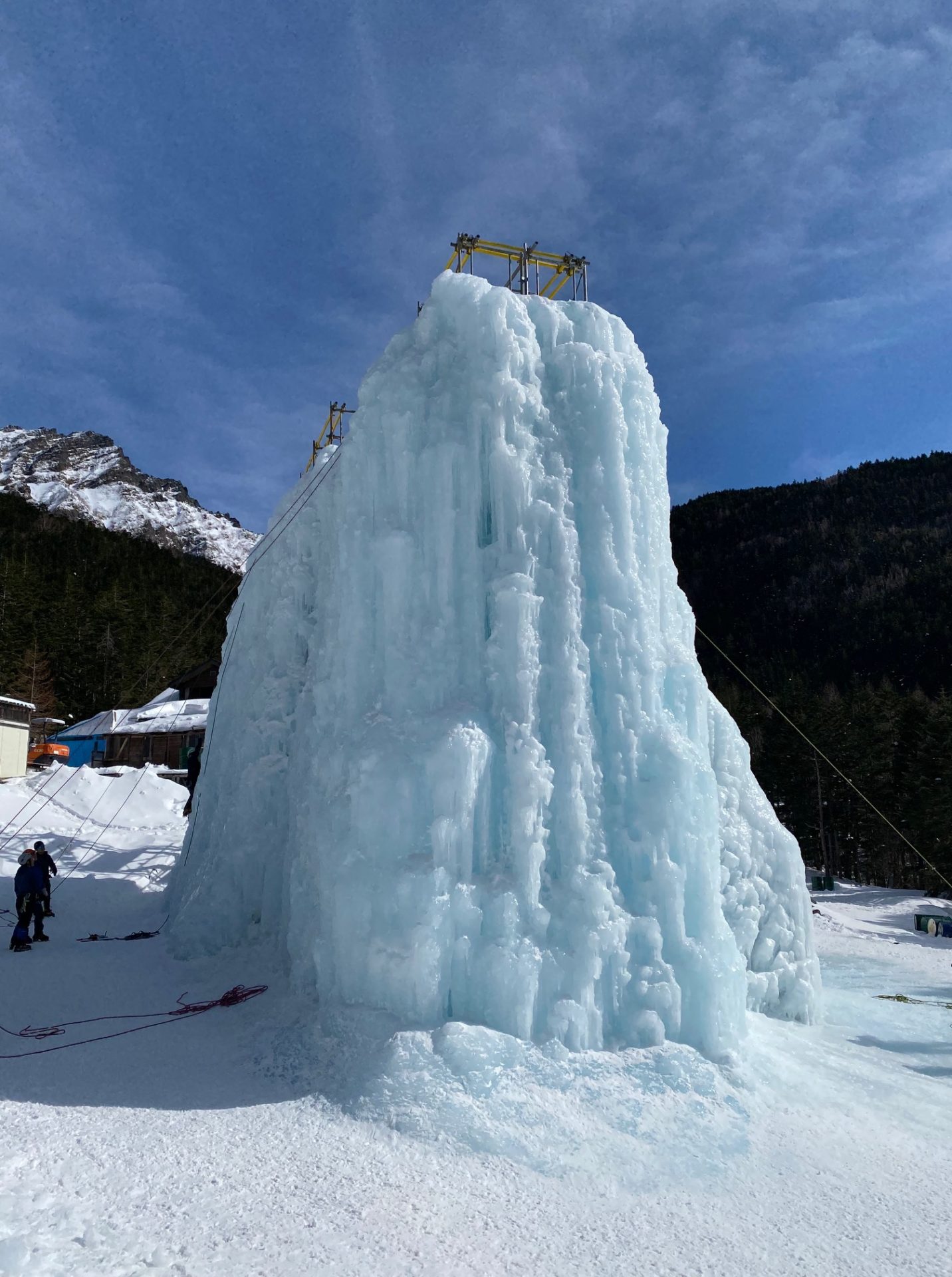 雪解け水が流れ込む北沢沿いを、沢を数回渡りながらひたすら歩いていく。小屋に近づいて目に入ったのはソーダ色した氷壁アイスキャンディだった。赤岳鉱泉でデポし、中山展望台へ。下ってくる人の中には半袖姿の男性もいて、今日の暑さを物語っていた。
