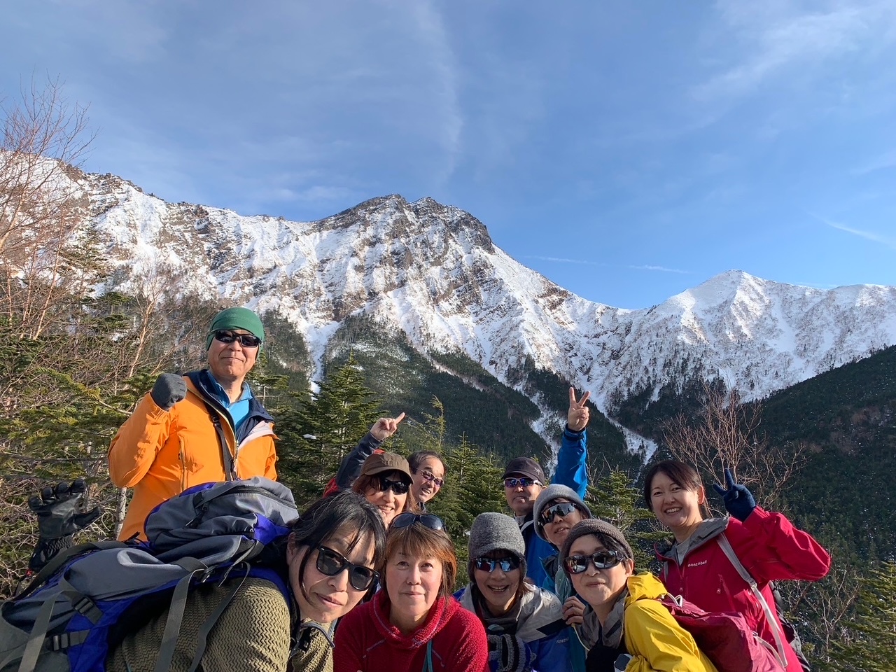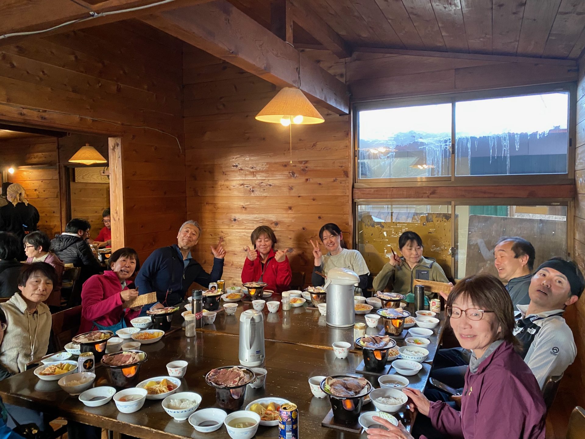 正午に赤岳鉱泉に戻った。ラーメンやカレーを注文する人、持参したものを食べる人、それぞれの顔に達成感とホッとした表情が見える。でも、まだ終わりじゃない。気を引き締め13時に下山開始。足の疲労からかつまずき、チェーンスパイクが吹っ飛ぶというハプニングもあり、あらためてみんなの足取りも慎重になった。1時間ほどで堰堤広場に着く。タクシーの迎え時間を1時間早める電話を入れる。16時に美濃戸口に到着。初日から靴擦れを抱えた受講生が2名いたが、2日間、よく頑張った。また、視界が不鮮明な中の先頭歩きは判断力や注意力が要求され難しさが増すと思うが、リーダーはよくやったと思う。中級登山教室を始めて1年。皆の成長を感じるとともに、チームワークが高まったと思う。後期に向けて、気持ち新たに頑張って進んでいきたい。