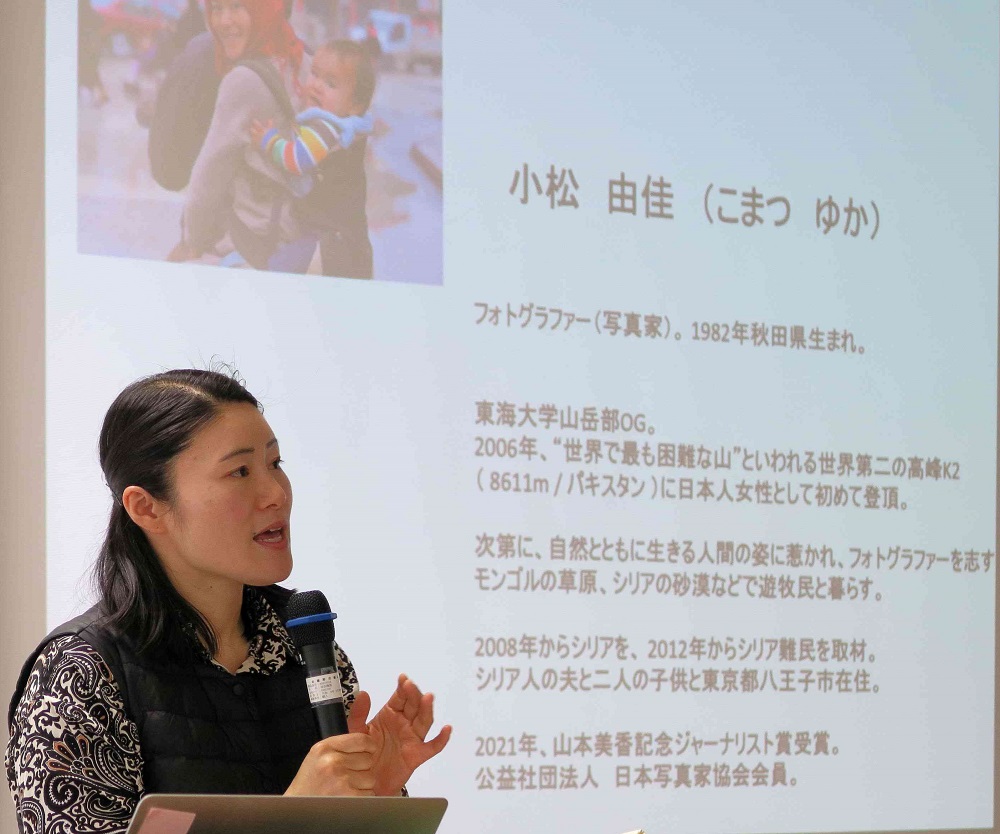 2024年、アサド政権崩壊直後に家族でシリアを訪問。内戦で荒れ果てた光景に胸を痛めた。シリアは民主化か独裁かの岐路に立ち、不安定な状況が続く中、帰国を望む難民も多い。小松氏は「知り、考え続けること」の重要性を訴え、登山で学んだ「道は一つではなく、一歩ずつ進むことが大切」という教訓が今も支えとなっている。困難の中でも希望を持ち、異文化共存を大切にしながら、現地の現実を伝え続ける。