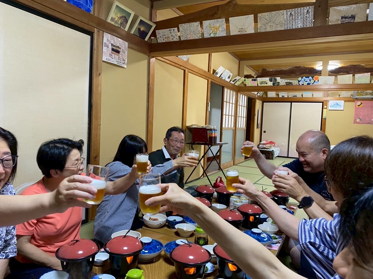 懇親会では、山へ登るきっかけや各々の山への思いを語り、宮崎講師、野口支部長にはご持参いただいた写真をもとに、厳しい山域での訓練の話、海外山行の話等々の話に聞き入った。