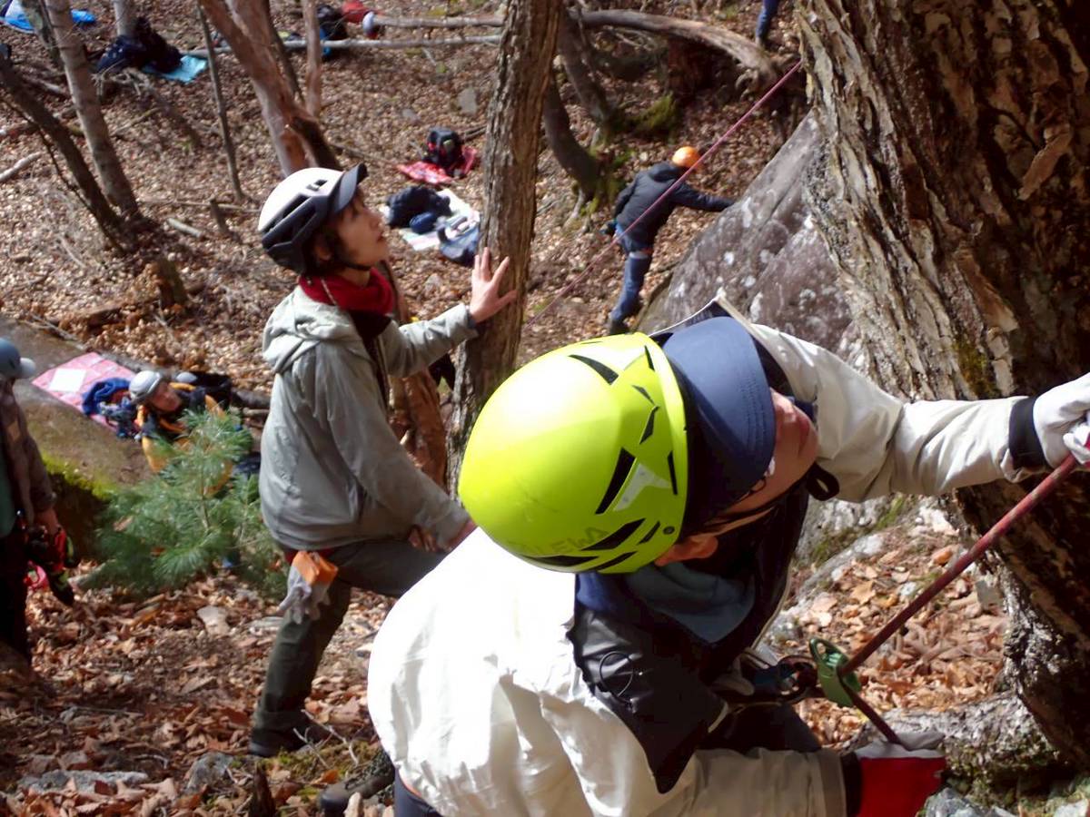 、多摩支部の支部員が全国の仲間とクライミング講習を受け、懇親を深めた。