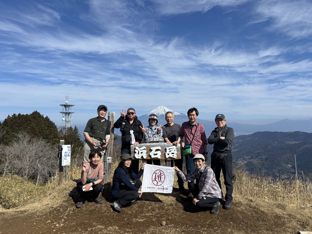 中央線で藤野駅に近づくと、山の中腹に「みどりのラブレター」が見えてきます。車窓からこの景色を見るのを、いつも楽しみにしていました。今回の山行では、そのモニュメントの場所まで行くことができました。山からのメッセージとも言われるこのモニュメント。近くで見ると、その大きさに驚かされます。藤野の山の中で出会う、ちょっとしたロマンを感じました。新緑の季節には、山の緑に囲まれた「みどりのラブレター」が、どんなメッセージを届けてくれるのか想像するのも楽しみです。今回の目玉である「鶴島金剛山」からの眺めも素晴らしく、充実した山行となりました。山行委員の皆さまそしてご一緒してくださった皆さま、ありがとうございました。(吉田)