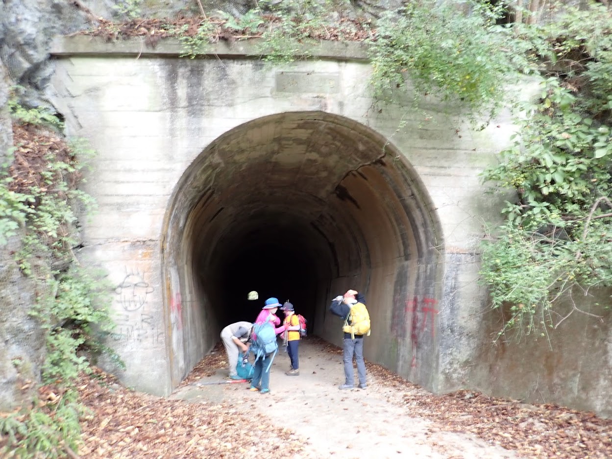 参加者7名、8時45分に本厚木駅に集合しバスで鐘ヶ嶽バス停へ。バスを降りたところで皆で自己紹介をしながらリーダーからいただいたお饅頭でエネルギーチャージ。鐘ヶ嶽は浅間神社の修行の山とのこと。10時、鳥居をくぐって山行開始。紅葉終わりかけの静かでゆったりした山道をおしゃべりしながら進む。途中の「のぞきの松」では展望が開けて曇天ながらも回りの山の景色を楽しむ。ここを過ぎると石の階段上りが始まる。鎖がはってある場所もありかなりの急騰。息を切らして登り着いたところに浅間神社の社が現れる。ここで昼食をとった後、鐘ヶ嶽頂上まで5分ほど。12時、561m登頂。写真撮影をして広沢寺温泉目指して下山。途中、ヘッドライトを装着して山の神隧道トンネルを通過。トンネルを出ると晴れ間が。さらに下り、地元の方に教えてもらった水場で水分補給。林道を下って13時30分広沢寺温泉バス停に無事到着。緊急事態宣言解除後2回目の平日山行、穏やかで楽しい山行となりました。