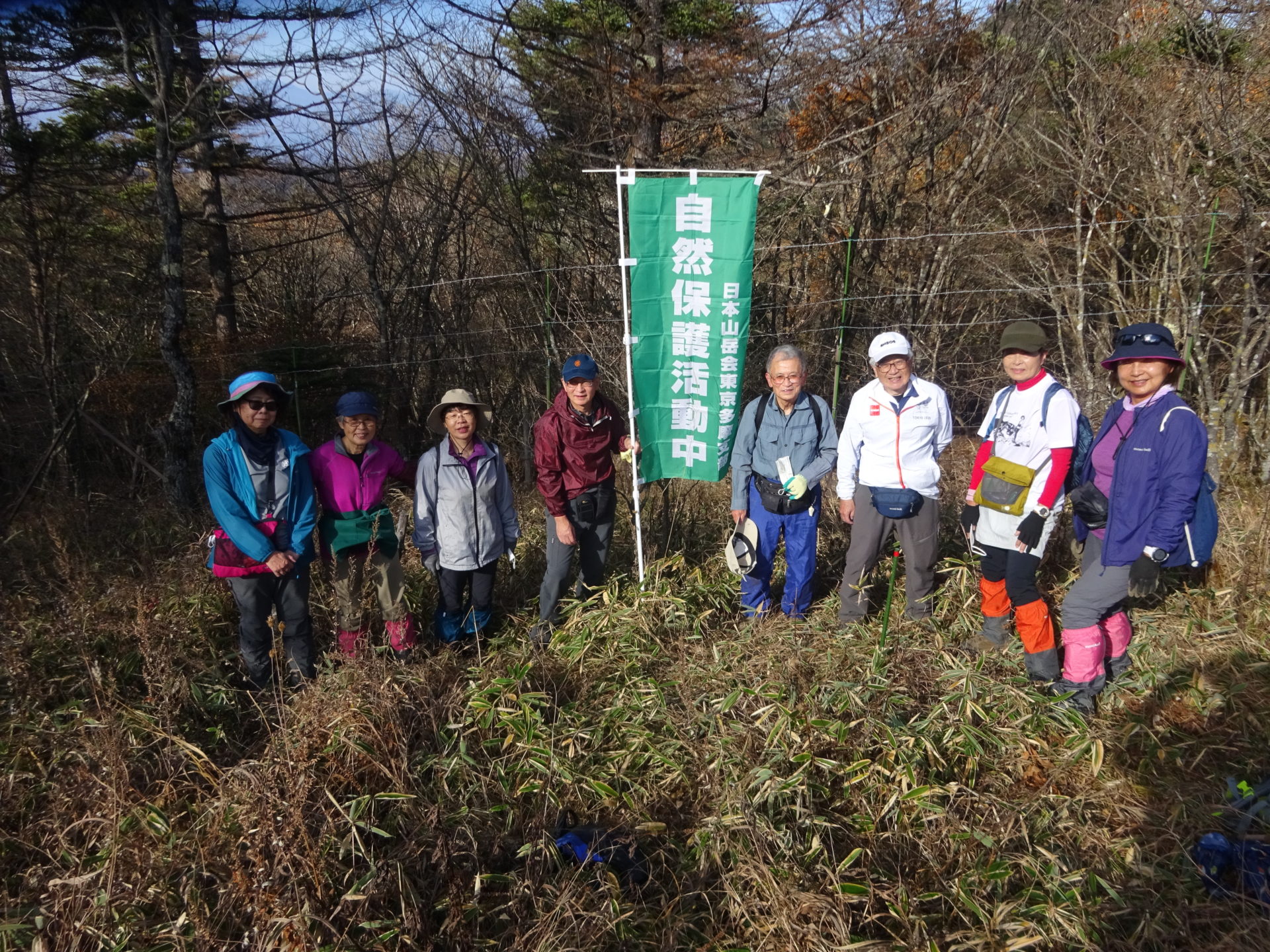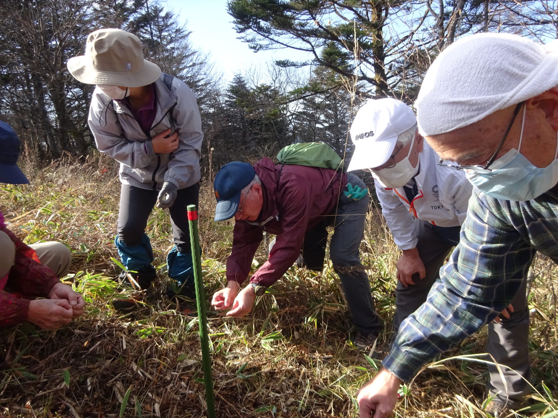11/12(日) 早朝、開運山周辺散策、朝食後保護活動, 昼食後往路を下山、三ツ峠山荘(13:30)→(14:30)登山道入口→タクシーで河口湖駅へ(16:30)河口湖駅解散 (雨天の場合には、二日目の作業は中止。)