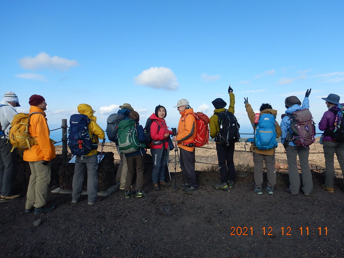 12月11日(土) 20:45東京竹芝客船ターミナル集合=22:00出港=6:00大島岡田港下船=6:12岡田港バス亭=6:35三原山温泉バス停=7:10大島温泉ホテル登山口→7:45テキサスルート分岐→8:16櫛形山→9:20赤ダレ9:25→9:45滑走台後→10:30展望台10:50→11:10三原山山頂中央火口→11:30剣が峰→12:25御神火茶屋(解散)