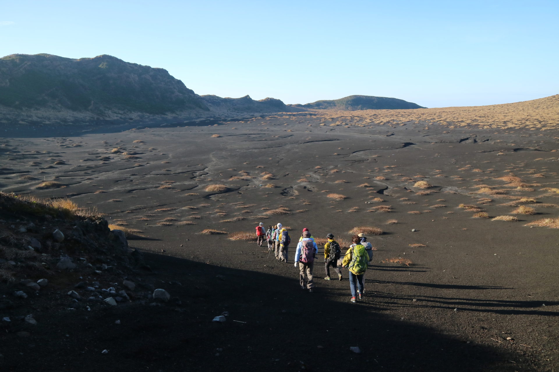 島そのものが一個の活火山である伊豆大島三原山山行。35年前の噴火で樹木がなくなった山道に「いつか森になる道」と名前が付けられている。