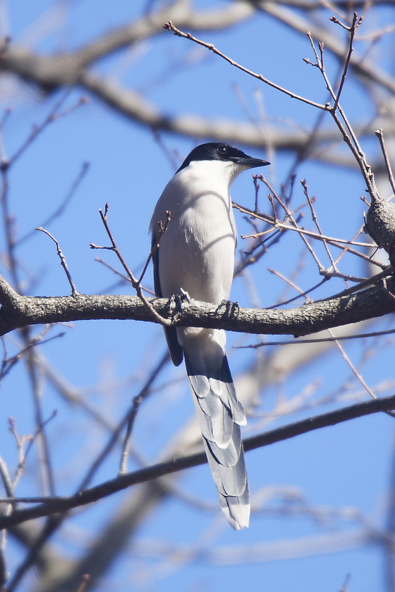 観察会で見られた野鳥:ハシブトガラス、ハシボソガラス、キジバト、ドバト、ムクドリ、ヒヨドリ、シジュウカラ、ヤマガラ、エナガ、メジロ、コゲラ、オナガ、アオゲラ 13種