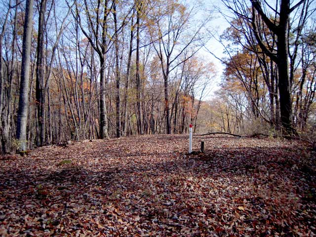 滑りやすいうえに木の根が張り出し、つかまるところもあまりない。道の左側に延々とロープが張ってある。手も使いながら登ること20〜30分で、いったん緩やかな下りになる。ひと息ついて10分も下るとまた上りになる。それも10分ほどで終わると広葉樹の尾根道をトラバースしながら緩やかに進む。急登が終わってから30分ほど、登山口からは1時間ほど、雑木林がまばらになって少し開けた感じになり、サス沢山に着く。山の頂上らしいものは何もないが、すぐ右手先に青々と輝く奥多摩湖が望める展望スポットがある。ベンチもあって奥多摩湖の向こうの石尾根を見ながら休憩するのに絶好の場所だ。ここには三角点があるが、それに気付く人はまずいないだろう。山頂のど真ん中に埋まっている。踏まれて削れて、ただの石にしか見えない。探してみてはいかが。